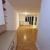 In dem Flur, der Sie in dieser Wohnung empfängt, befindet sich ein großer, praktischer Einbauschrank, in dem Kleider oder eine Garderobe untergebracht werden können.