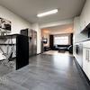 Im Erdgeschoss befinden sich linker Hand die moderne Küche und rechts das Gäste-WC. Der Flur führt geradewegs in den großzügigen, lichtdurchfluteten Wohn- und Essbereich. Die offene Verbindung zur Küche sorgt für ein kommunikatives Wohngefühl und macht diesen Bereich zum Mittelpunkt des täglichen Familienlebens. Große Fensterflächen eröffnen den Blick in den gepflegten Garten. Von hier aus gelangt man auf die überdachte Terrasse mit integrierter Beschattung – ein idealer Ort für gesellige Grillabende, entspannte Nachmittage oder spielende Kinder bei jedem Wetter.