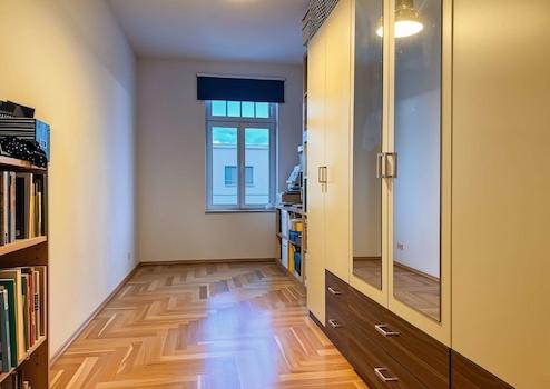Hinter der Eingangstür erstreckt sich ein langer, charakteristischer Flur, in welchem eine große Garderobe und Kleiderschränke ihren Platz finden. Von hier aus erreichen Sie alle Räumlichkeiten der Wohnung.