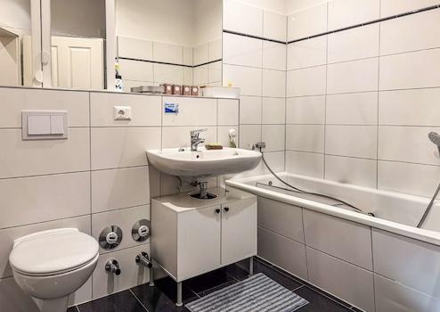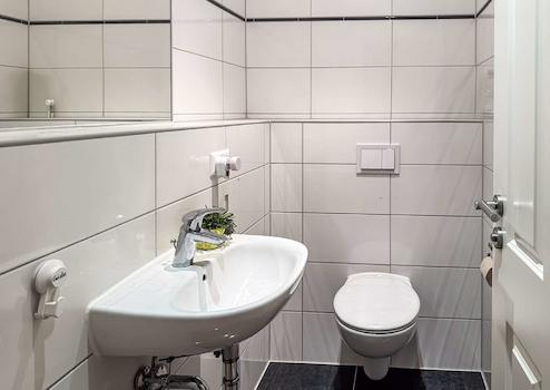 Das Hauptbadezimmer verfügt sowohl über die Annehmlichkeiten einer Badewanne als auch über die einer Dusche. Außerdem existiert eine separate Gäste-Toilette.