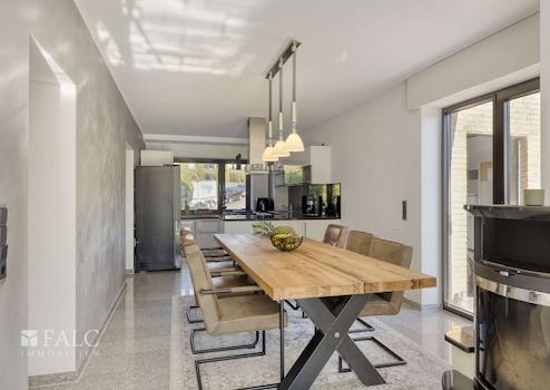 Das Haus erstreckt sich über drei Ebenen und bietet insgesamt 6 Zimmer, 3 Bäder, 2 Balkone sowie eine großzügige, südlich ausgerichtete Terrasse mit Zugang zum eingezäunten Garten – ideal für Kinder, Haustiere oder entspannte Stunden im Freien. Im Erdgeschoss befindet sich der helle Wohn- und Essbereich mit Kamin und Zugang zum Balkon. Die offene Einbauküche mit Kochinsel (im Kaufpreis enthalten) bildet das Herzstück des Familienlebens und lädt zum gemeinsamen Kochen und Verweilen ein.