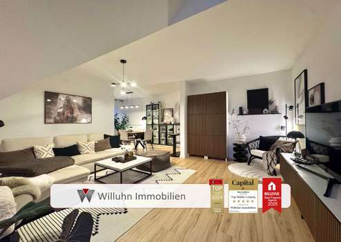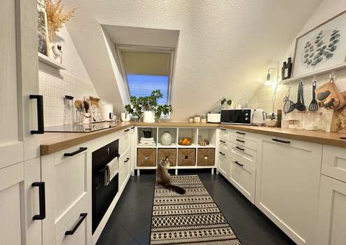 Hinweis: Die Wohnung ist derzeit noch vermietet und daher möbliert dargestellt. Sie wird jedoch unmöbliert übergeben. Die vorhandene Einbauküche kann auf Wunsch gegen einen Aufpreis von der aktuellen Mieterin erworben werden.
