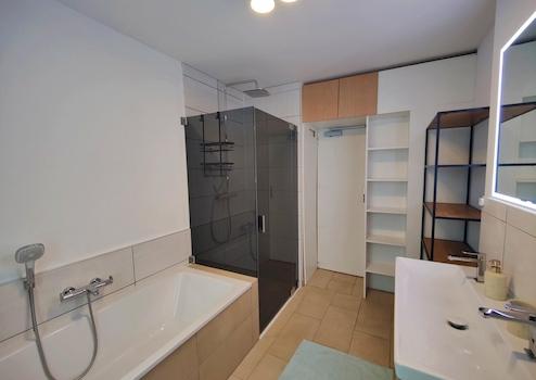 Ein besonderes Highlight ist die Terrasse, die zum Entspannen einlädt, mit etwa 20 m² aber auch groß genug ist um sie mit Besuchern zu genießen. Die Wohnung verfügt über ein Hauptbadezimmer und eine bereits ausgestattete Küche. Ein Gäste-WC ist ebenfalls vorhanden. Zwei Stellplätze in der Garage gehören zur Wohnung und können bei Bedarf zusätzlich angemietet werden.