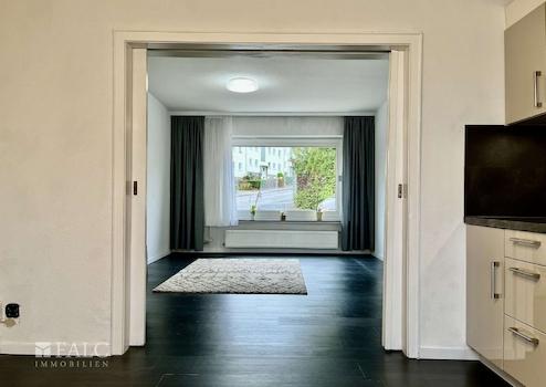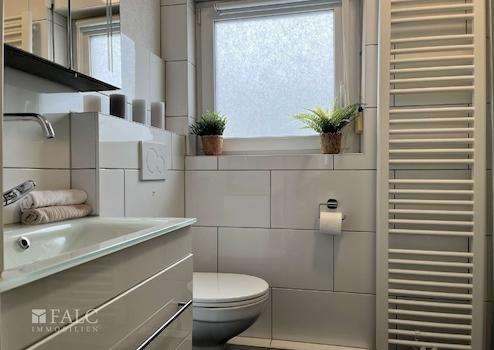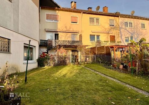 Dieses massiv im Jahr 1962 erbaute Reihenhaus überzeugt mit einer soliden Bauweise, einer überraschend großzügigen Raumaufteilung und zahlreichen Modernisierungen. Auf rund 96 m² Wohnfläche verteilt auf fünf Zimmer bietet das Haus vielseitige Nutzungsmöglichkeiten und eignet sich ideal für Familien oder Paare, die Wert auf zusätzliche Räume für Gäste, Arbeit oder Hobbys legen. Im Erdgeschoss befindet sich direkt neben der Eingangstür ein praktisches Gäste-WC, gefolgt vom Flur, der in ein helles Gästezimmer sowie in das gemütliche Wohnzimmer führt. Von hier gelangt man durch eine beidseitig versenkbare Schiebetür in die Küche, die nicht nur funktional gestaltet ist, sondern auch einen direkten Zugang zum Balkon bietet. Über eine Wendeltreppe gelangt man von dort in den Garten, der das Platzangebot im Freien ideal ergänzt.
