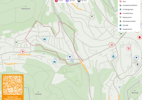 Die tägliche Versorgung ist komfortabel gewährleistet: Einkaufsmöglichkeiten, Bäckerei, Apotheke sowie medizinische Versorgung befinden sich in kurzer Distanz. Besonders für Familien attraktiv ist die hervorragende Nähe zur örtlichen Grundschule, die bequem zu Fuß erreichbar ist. Auch Kindergärten und weitere schulische Einrichtungen liegen nur wenige Minuten entfernt.
