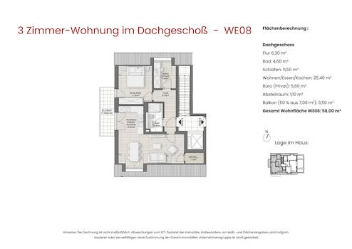 WE8 - Dachgeschosstraum mit Südwest-Balkon - KfW 40 QNG Bauweise