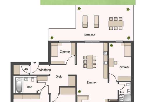 * Terrasse in Süd-West-Ausrichtung