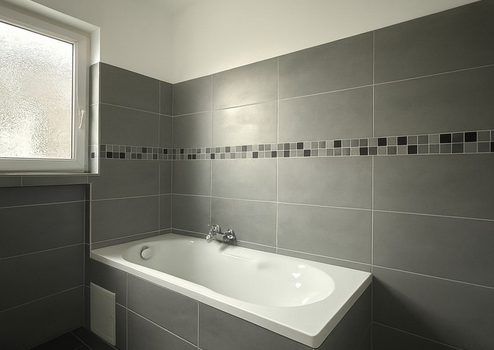 Das Badezimmer präsentiert sich stilvoll und zeitgemäß: hochwertige Fliesen, moderne Sanitärobjekte und eine klare Gestaltung verbinden Funktionalität mit Wohlfühl-Charakter.