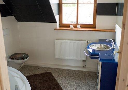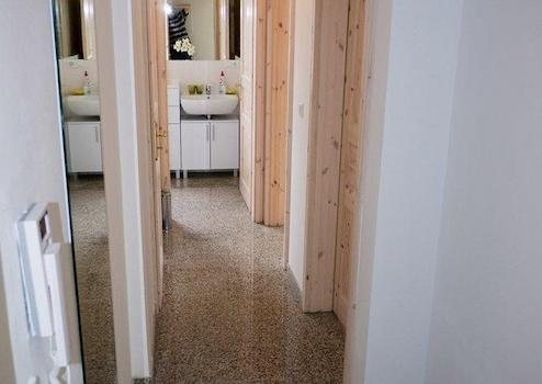 - Im Erdgeschoss des Treppenhauses Waschraum eingerichtet