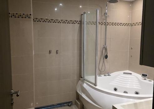 Bad komplett erneuert: Elektrik, Sanitär, elektrische Fußbodenheizung, Whirlpool-Badewanne