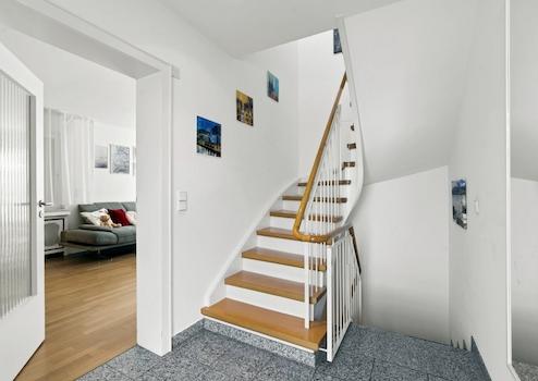 Es bietet Ihnen bei 5 Zimmer, Küche, Bad, Balkon, Wintergarten, Gäste-WC eine Wohnfläche von ca. 147 m², welche sich auf zwei Ebenen aufteilen. Im Untergeschoss erwartet Sie neben 3 Vorratsräumen, ein Wasch- und Trockenraum mit Sauna und ebenerdiger Dusche.