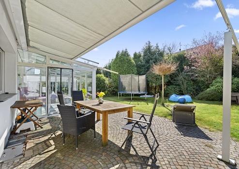 Der Außenbereich beeindruckt mit einem nach Süd-Westen ausgerichteten Terrasse und einem gepflegten, nahezu uneinsehbarem Garten mit Gartenhaus, der Ihnen vielfältige Möglichkeiten zur Erholung bietet.
