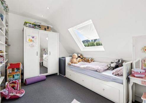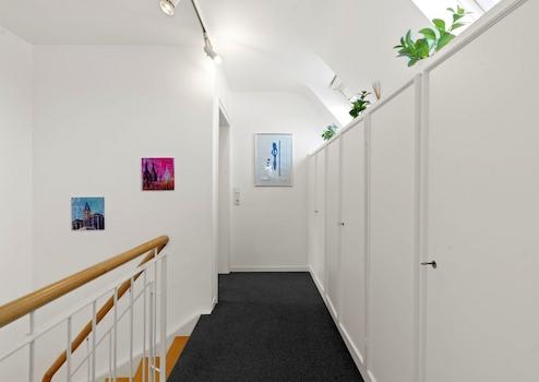 Flur 1: Teppichboden, Einbauschrank, 2 Dachflächenfenster mit elektrischen Rollläden und Öffnung