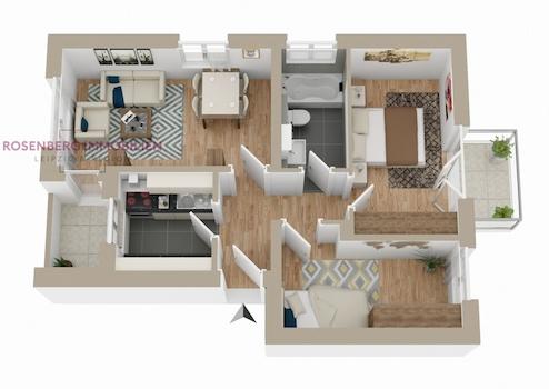Die Wohnung besticht durch eine durchdachte Raumaufteilung mit insgesamt drei Zimmern. Zwei Schlafzimmer bieten behaglichen Rückzugsraum, während das lichtdurchflutete Wohnzimmer zum Entspannen und Wohlfühlen einlädt. Das Badezimmer ist funktional gestaltet und rundet das stimmige Gesamtbild ab.
