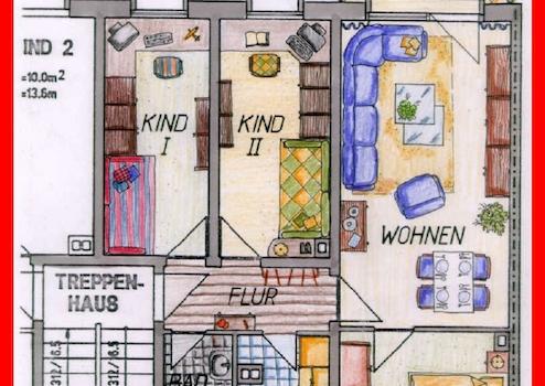 - Die Wohn-, Schlaf- und Kinderzimmer und der Flur sind oder werden mit Laminatboden ausgestattet.