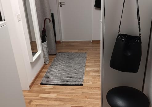 Beim Betreten dieser charmanten Wohnung, die sich in einem gepflegten Mehrfamilienhaus aus dem Jahr 1972 befindet, werden Sie von einem einladenden Flur empfangen. Dieser bietet ausreichend Platz für eine Garderobe und führt Sie direkt in den zentralen Wohnbereich.