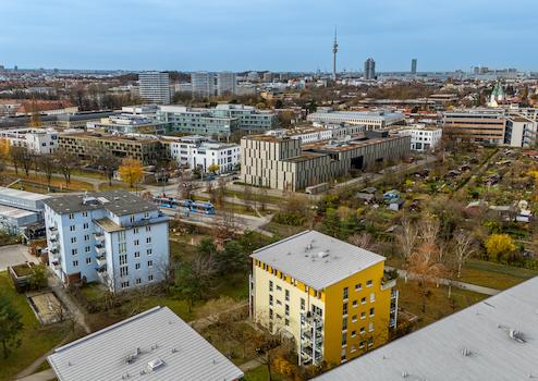 Die Parkstadt Schwabing gilt als Beispiel für die erfolgreiche Symbiose aus Wohnen, Arbeiten und Erholung. Breite Boulevards, klare Linien und großzügige Grünflächen prägen das Bild dieses dynamischen Stadtteils. Die Umgebung ist geprägt von einer jungen, aktiven Bewohnerstruktur, die die moderne Infrastruktur ebenso schätzt wie die unmittelbare Nähe zur Münchner Innenstadt.