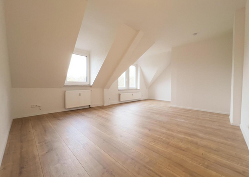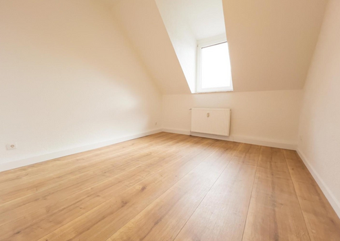 Die Wohnung erstreckt sich über das 3. Obergeschoss und den ausgebauten Spitzboden und bietet mit drei Schlafzimmern, einem gemütlichen Wohnzimmer, einer separaten Küche sowie einem Tageslichtbad ausreichend Platz für Paare, Familien oder Berufstätige im Homeoffice.
