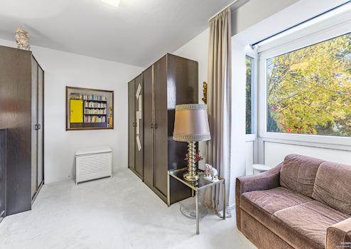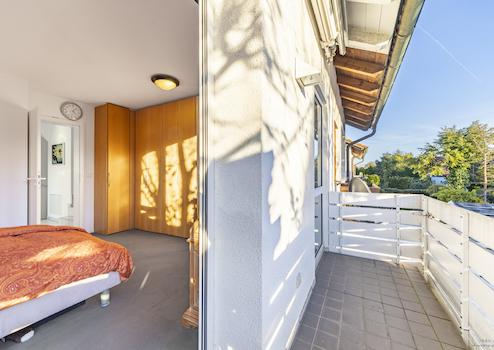 In der Ankleide – die auch als Kinderzimmer genutzt werden kann – wurde kürzlich ein neuer Teppichboden verlegt, der für eine warme, behagliche Stimmung sorgt. Das Schlafzimmer bietet zusätzlich einen Balkon (ca. 4 × 1 m) mit Blick ins Grüne – ein stiller Rückzugsort.