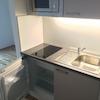 Einbauküche mit 2-Plattenherd und kleinem Kühlschrank