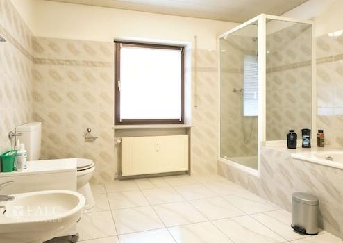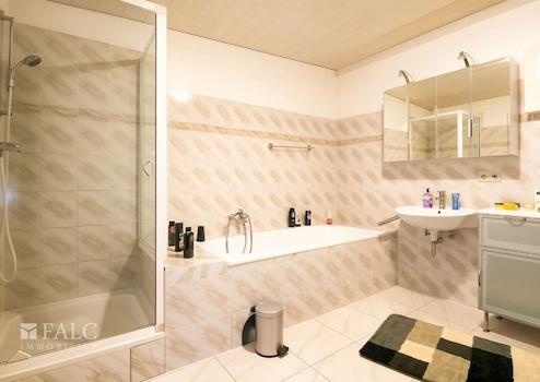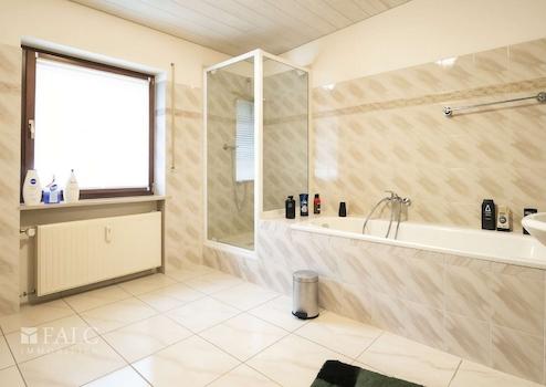 - Badezimmer mit Wanne, Dusche, Waschbecken, WC und BD