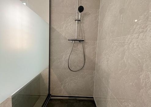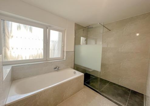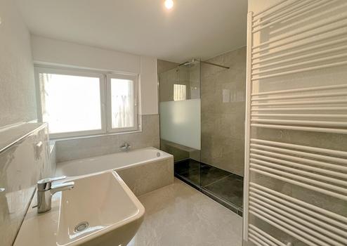 Neues Bad mit 60 x 120 Fliesen, großzügiger Dusche und extra Badewanne