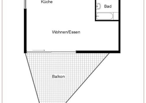 Das Haus hat überschaubare 6 Parteien. Der Flurbereich führt in das Badezimmer mit Badewanne, WC und Waschbecken so wie dem Waschmaschinenanschluss. Rechts vom Badezimmer befindet sich das Schlafzimmer. Das großzügige Wohnzimmer mit Essbereich ist hell und freundlich. Die Einbauküche ist zweckmäßig.
