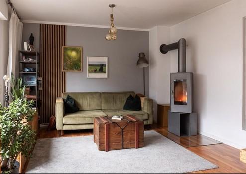 Bereits der gepflegte Vorgarten vermittelt einen freundlichen ersten Eindruck. Im Erdgeschoss erwartet Sie ein großzügiger, lichtdurchfluteter Wohn- und Essbereich mit Kamin und direktem Zugang zur sonnigen Terrasse und dem charmanten Garten. Die Kombination aus Holzterrasse, Grünfläche und gemütlicher Sitzecke schafft einen perfekten Ort zum Entspannen oder für gesellige Stunden. Die offene Einbauküche integriert sich harmonisch in den Wohnbereich. Ein Gäste-WC ergänzt das Erdgeschoss.