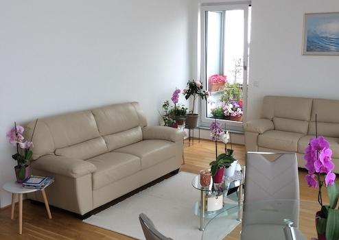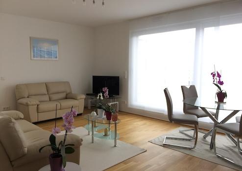 Von Ihrem Tiefgaragenstellplatz aus, gelangen Sie direkt mit dem Aufzug zu Ihrer in der 3-Etage zur Südseite gelegenen Wohnung. Die Wohnung selbst empfängt Sie mit einem geräumigen Flur, wo Ihre Garderobe Platz findet. Das Wohnzimmer mit Essbereich und offen gestalteter Küche bietet Ihnen viel Platz und Weitblick zum Entspannen. Die Küche selbst wurde mit einer Einbauküche perfekt ausgestattet. Auf der großräumigen Terrasse genießen Sie die Sonne ab den frühen Morgenstunden bis zum Sonnenuntergang, lassen Sie einfach die hochwertige Markise nach Belieben ausfahren. Das eingerichtete Tageslicht-Badezimmer mit Badewanne und Dusche wirkt überzeugend. Das zur Süd-Ostseite gelegenen Schlafzimmer ist mit einem großen Kleiderschrank eingerichtet. Ein zweites Zimmer dient als Büro oder Gästezimmer.