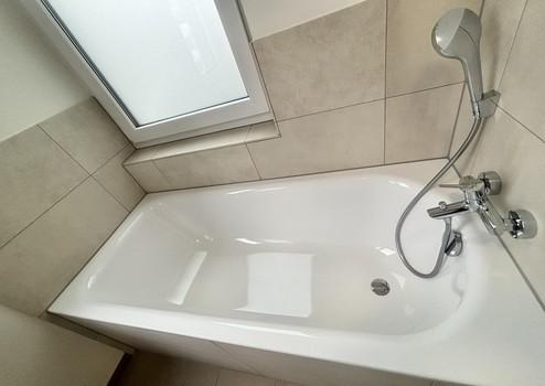 + Tageslichtbad mit Badewanne, bodengleich gefliester Dusche, Handtuchheizkörper und Badspiegelschrank