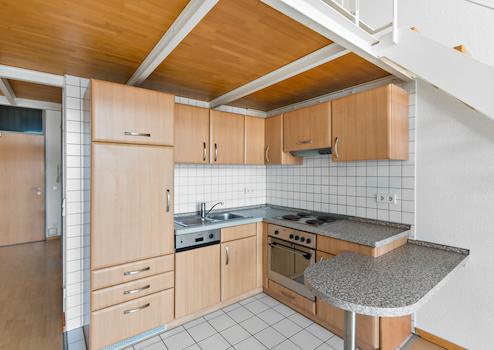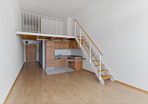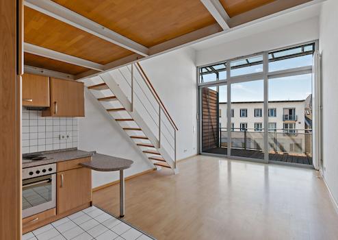 Das absolute Highlight dieser Wohnung ist das großzügige Wohnzimmer mit einer integrierten Treppe zur Galerie, die sich perfekt als offener Schlafbereich nutzen lässt. Die Einbauküche ist modern und funktional gestaltet und lädt zum Kochen und Verweilen ein. Im Badezimmer finden Sie sowohl eine Badewanne als auch eine Duschabtrennung, die für ein entspanntes Wellnesserlebnis sorgen. Ein praktischer Abstellraum bietet ausreichend Platz für Ihre Waschmaschine und zusätzlichen Stauraum.