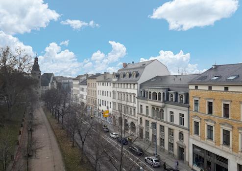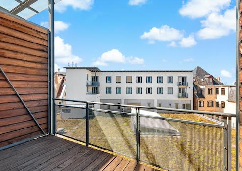 Genießen Sie sonnige Stunden auf dem Balkon und lassen Sie den Blick über die Stadt schweifen. Die Wohnung ist bequem mit einem Aufzug erreichbar, was Ihren Alltag noch komfortabler gestaltet.