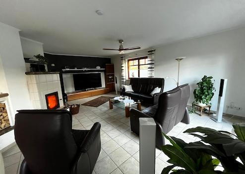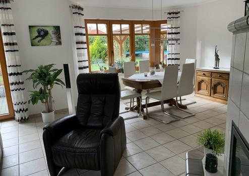 - großzügiger Wohn- und Essbereich inkl. Kaminofen und Terrassenzugang