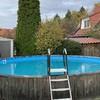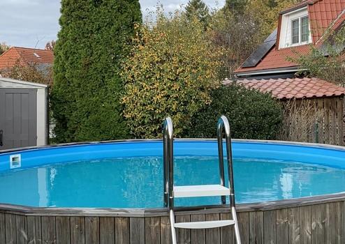 - halb eingelassener Rundpool mit 6 Metern Durchmesser und Gerätehäuschen