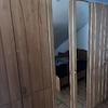 Schlafzimmer mit Bett, Kleiderschrank und weiterer Möblierung