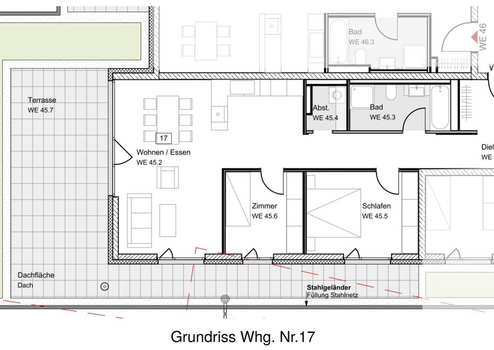 - Großzügige 45qm Dachterrasse
