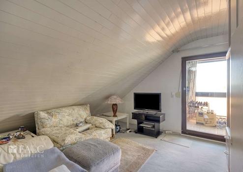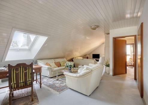 Das Dachgeschoss präsentiert sich mit einem großzügigen Studio, drei Zimmern, Bad und einer Loggia. Besonders hervorzuheben ist der hohe Wohnkomfort durch helle Räume, viel Stauraum und den wunderbaren Blick in die Natur. Ideal für Kinder, Gäste oder als Hobby- und Arbeitsbereich.