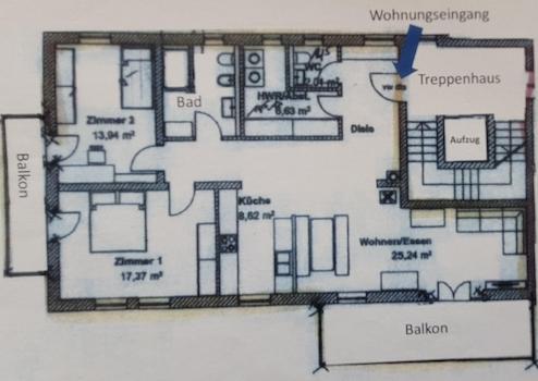 Diese neuwertige altersgerechte 3-Zimmer-Wohnung erreichen Sie über ein großes Treppenhaus oder mit einem großzügigen Lift. Auf ca. 104 m² Wohnfläche bietet die Wohnung ein gut strukturierte Raumaufteilung.