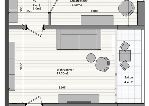 Großzügiges Wohnzimmer mit Zugang zum Balkon
