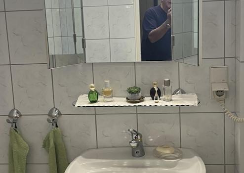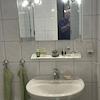 Die offen gehaltene Küche kann mit übernommen werden, ist aber kein muss, Sie ist bereits älter und kann auf Wunsch entfernt werden. Das Bad im DG verfügt über eine Wanne sowie einer Dusche, zusätzlich gibt es hier 2 Säulenwaschtische, so dass sich 2 Personen gleichzeitige für den Tag herrichten könnten. Durch 2 Dachflächen Veluxfenster bekommt auch das Badezimmer sehr viel Tageslicht. Ein WC und ein Bidet vervollständigen das Bad. Im EG ist ein Gäste Bad mit Waschtisch und WC, alle Sanitärgegenstände stammen aus dem Ursprungsbaujahr.