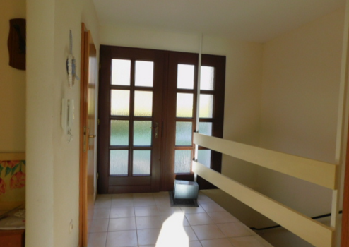 Von der befestigten Hoffläche gelangen Sie über 2 niedrige Stufen nahezu barrierefrei zum Eingang des Hauses und betreten zunächst den Hausflur bzw. die geräumige Diele, von der Sie alle weiteren Räume barrierefrei erreichen.