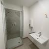 Der großzügige Eingangsbereich bietet ausreichend Platz für Garderobe und Schrank. Rechts liegt die geräumige Küche mit Platz für eine Essgruppe. Es stehen zwei Bäder zur Verfügung: ein modernes Duschbad sowie ein großes Masterbad mit Badewanne, Waschtisch und WC.