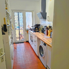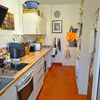 In Wohn- und Schlafzimmer und im Flur gibt es einen Holzdielenboden. Die Küche und das Bad verfügen über einen Fließenboden.