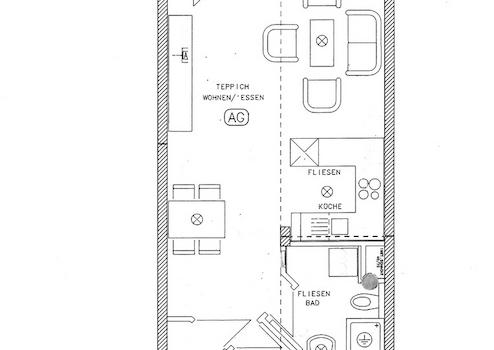 Schöne 2 Erdgeschoss-Wohnung mit 2 Zimmern und einer kleinen Terasse mit anschliessendem Garten der zum Chillen einlädt.