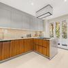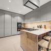Die Küche schließt harmonisch an den Wohnraum an. Ausgestattet mit hochwertiger Einbauküche, Gas-Kochfeld, Siemens-Geräten, Liebherr-Kühlschrank und Berbel-Dunstabzugshaube bietet sie zudem eine elegante Bar mit zwei Hockern und direkten Balkonzugang.