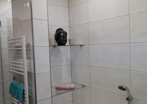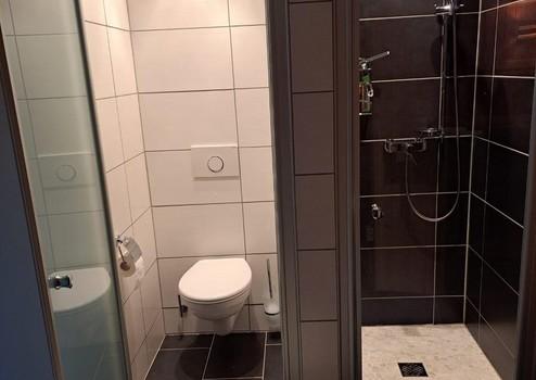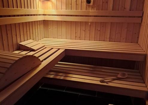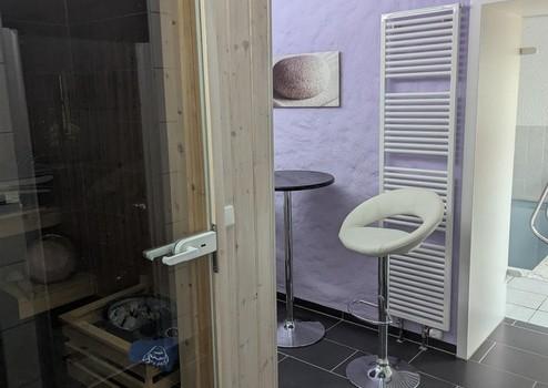 •Moderne Sauna mit eigener Dusche, Waschplatz und WC