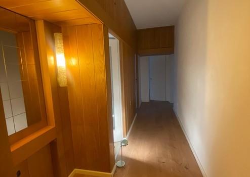 -der Flur ist mit maßangefertigten und holzvertäfelten Einbauschränken im Stil der 60er Jahre ausgestattet