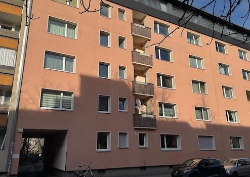 Das Gebäude, ein 5-geschossiges Mehrfamilien-Doppelhaus, wurde ca. 1962 im Rahmen des Wiederaufbauprogramms in traditioneller Bauweise mit massiven Geschossdecken errichtet. Das Dachgeschoss wurde in ca. 2022 voll ausgebaut und ist bewohnt. Die Straßenfassade ist nach Südwesten ausgerichtet und wird ab Mittag von der Sonne beschienen, die Hoffassade ist nach Nordost orientiert. Das Gebäude wurde ca. 2014 gedämmt, die Fenster (doppelverglaste Kunststofffenster) wurden hierbei ausgetauscht.