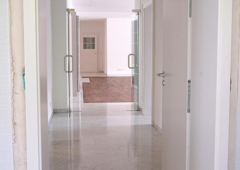 - Hochwertige Bodenbeläge (Echtholz-Parkett und Marmor)