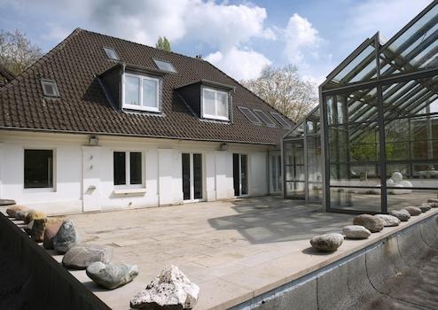 Das freistehende Wohn- und Geschäftshaus liegt im Grünen am Ende der Berthastraße in unmittelbarer Nähe der Zeche Hannover. Es wird von drei Seiten von Bäumen eingefasst. Die Parkanlage "Herne Park" beginnt unmittelbar vor der Haustür.